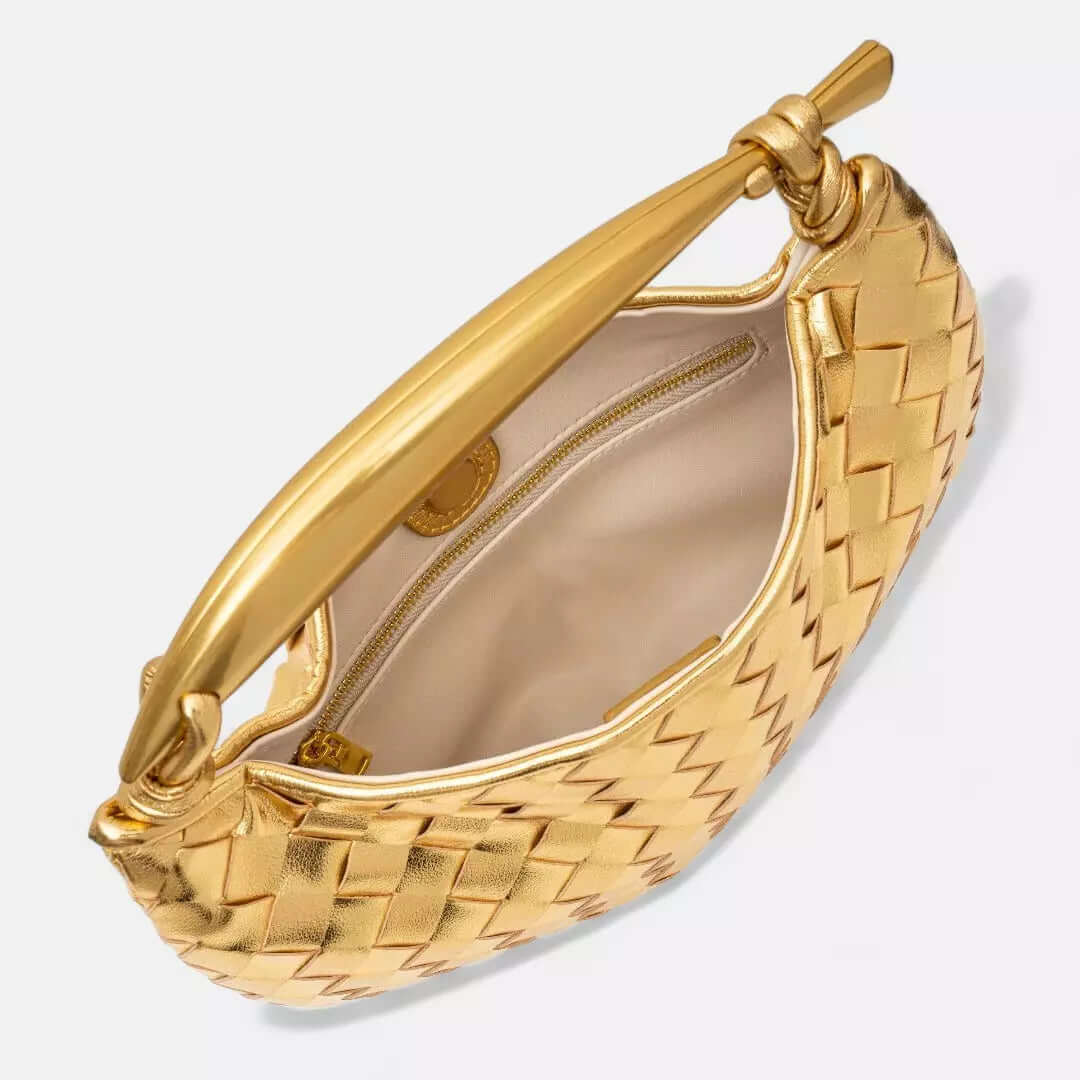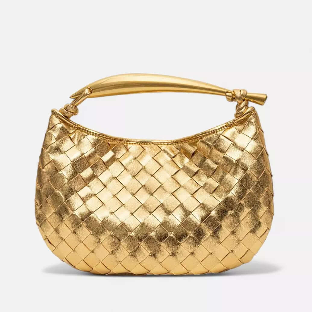 Com um design em fitas trançadas na cor dourada, essa bolsa revela seu brilho singular, sendo ela um sinônimo de nobreza e autenticidade.