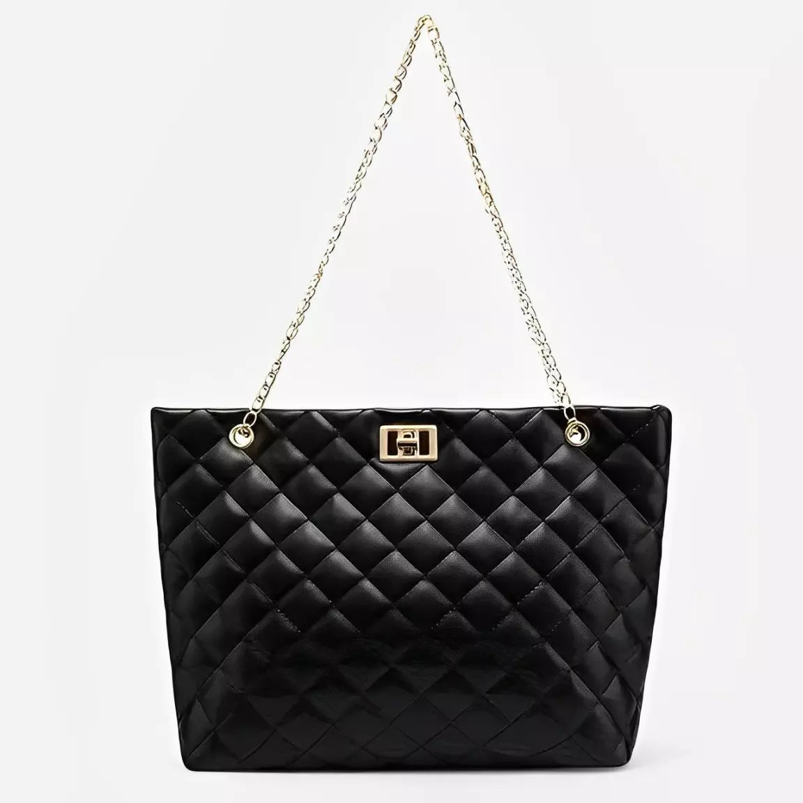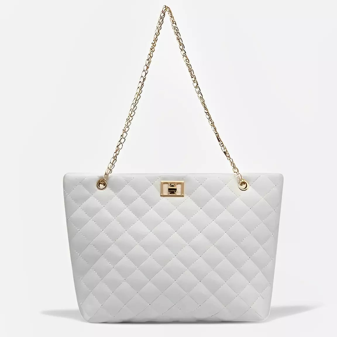 Em um estilo quadriculado, ornamentado com seus detalhes levemente tingidos de um fino e elegante dourado, essa bolsa transborda a sofisticação e elegância, destacando-se com sua estética sem igual.